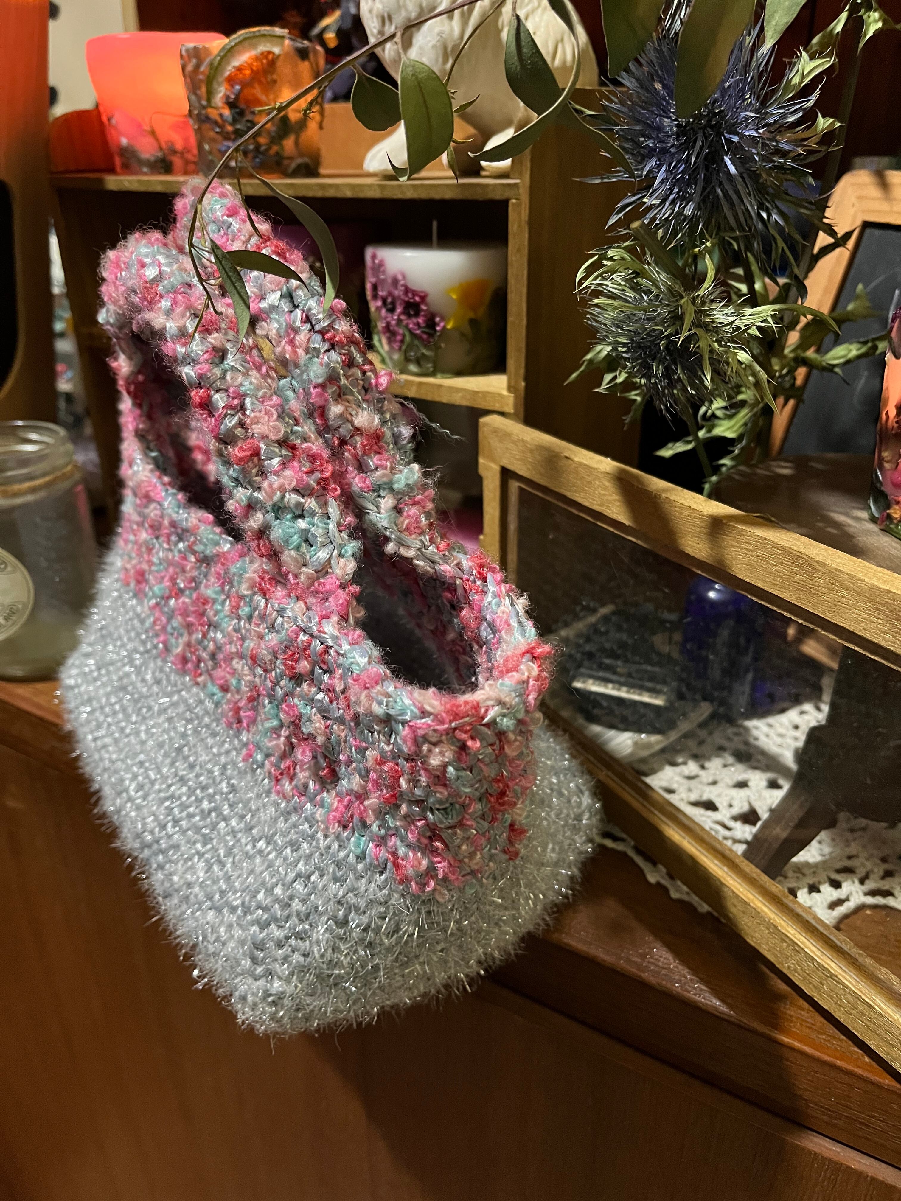 レプラコーンの魔女がせっせと暖かくなる前にとカゴバックを編みました。