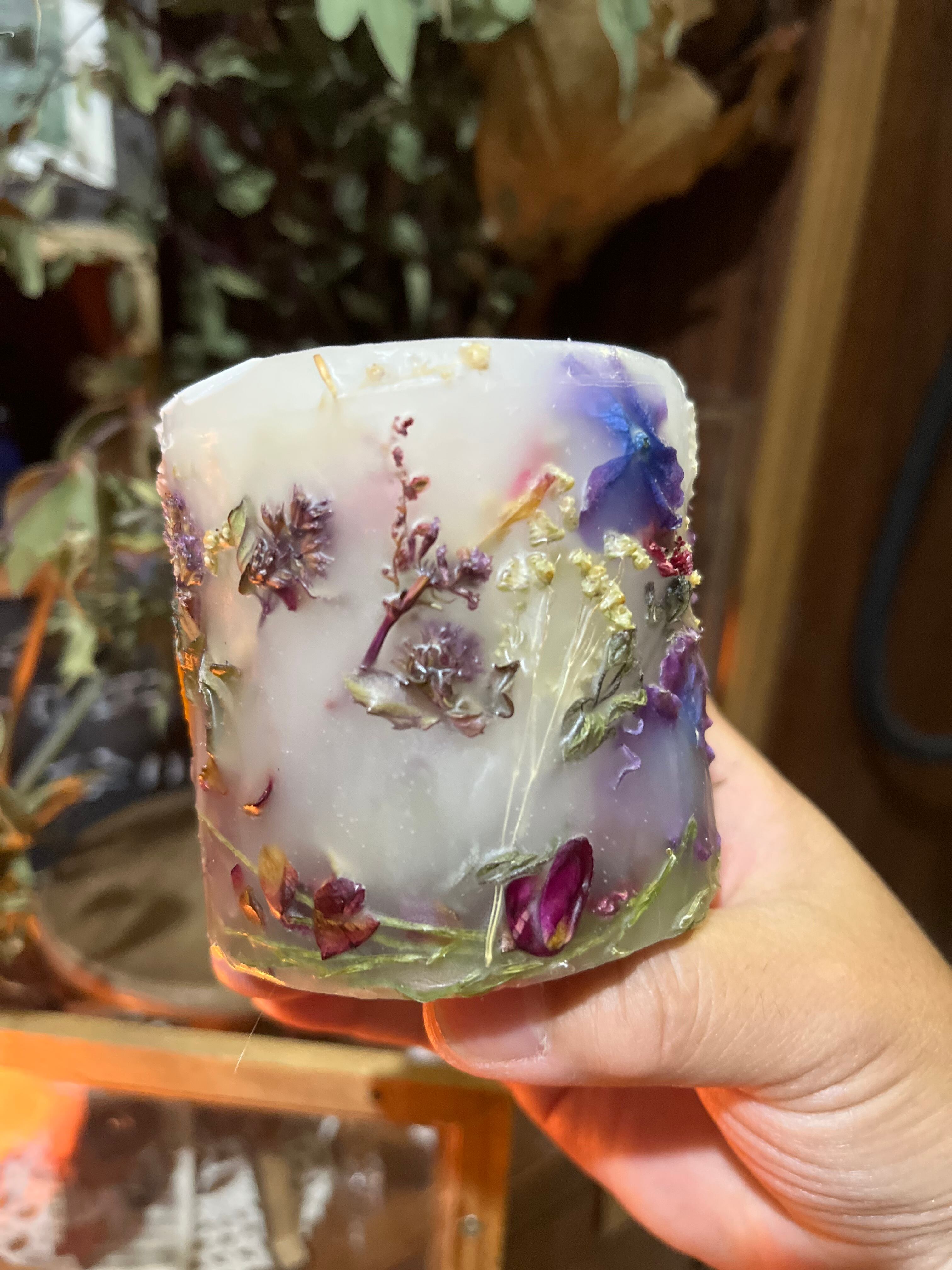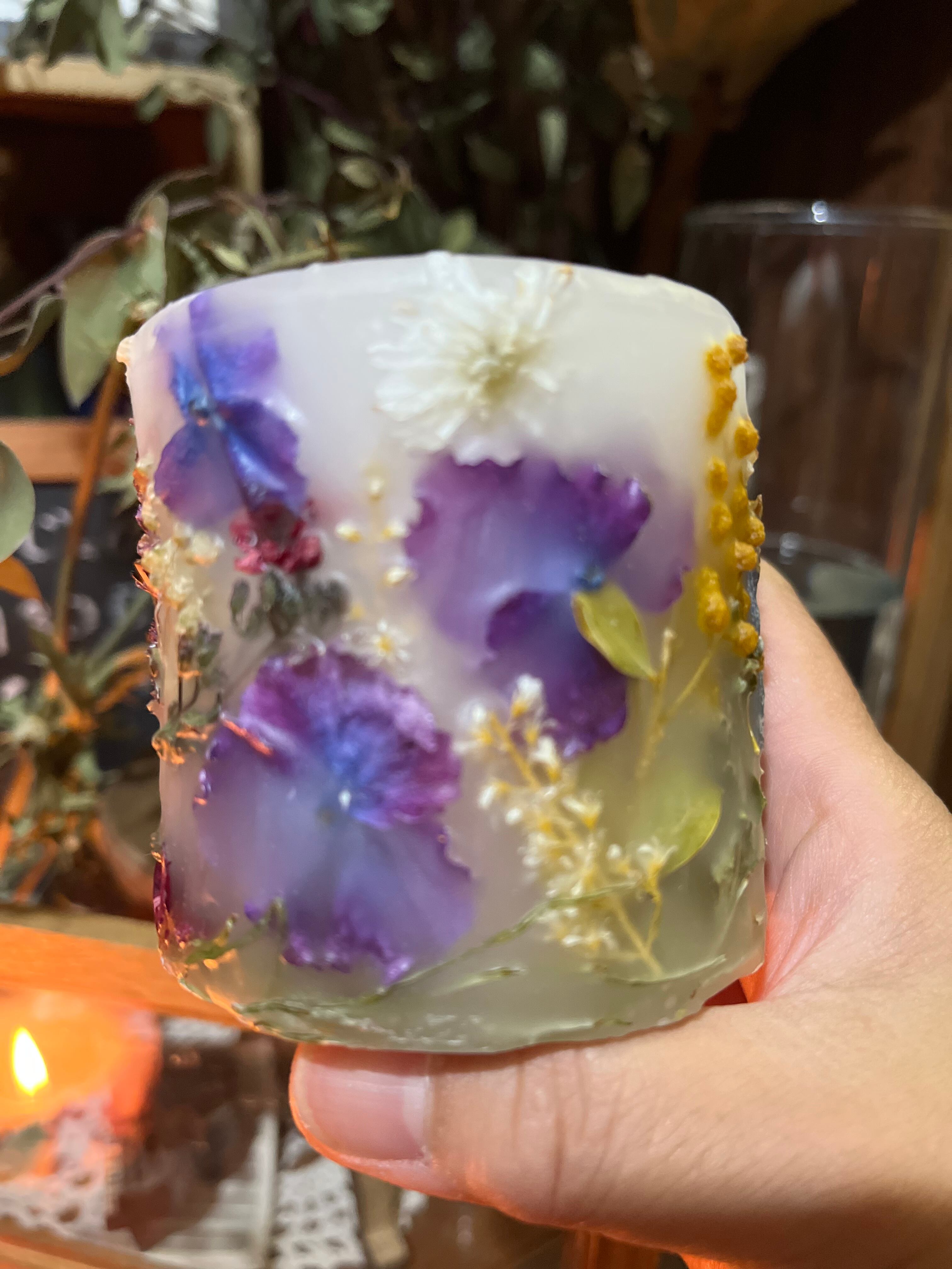 ボタニカルキャンドルは二層の作りになっています。お花が閉じ込められているところの蝋は燃えません。